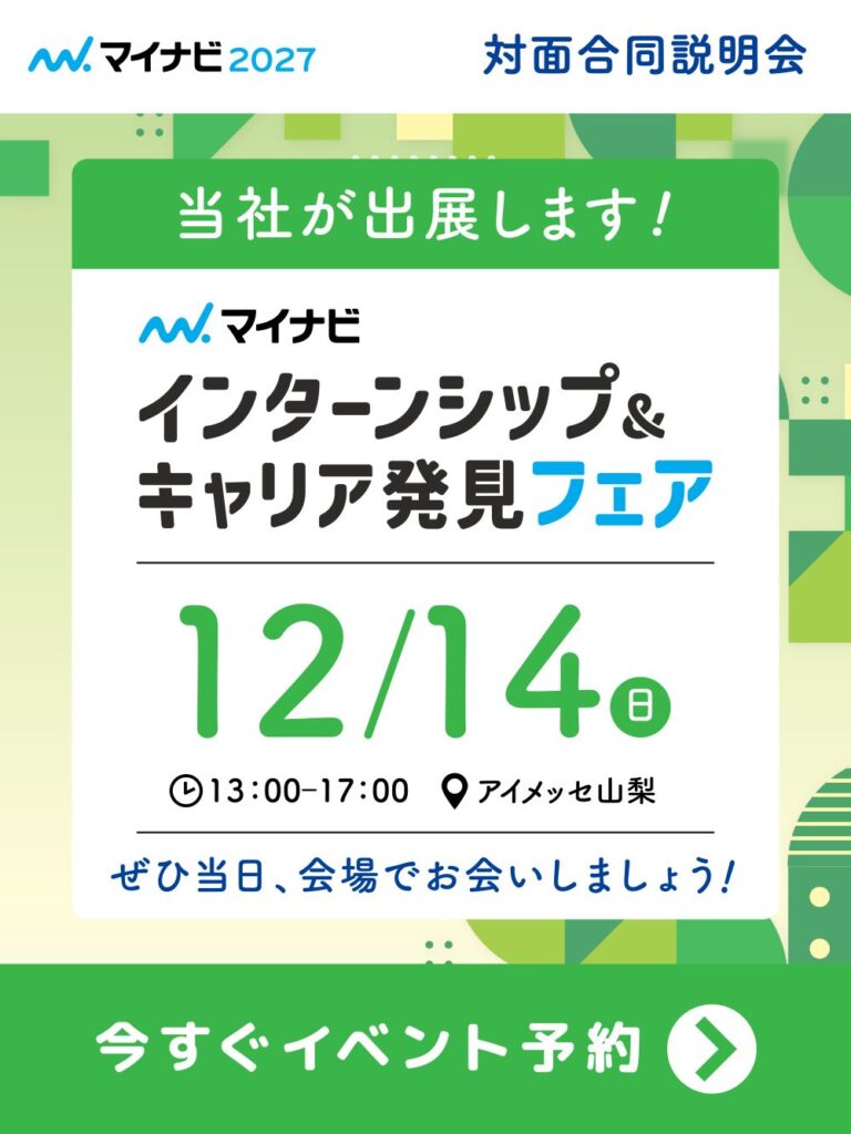 「マイナビ インターンシップ&キャリア発見フェア 甲府会場」出展のお知らせ